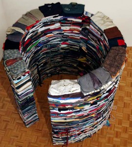 When asked where he got the idea for creating sculptures out of second hand clothing, artist Derick Melander said, "When I come across a dress with a hand-sewn r ...