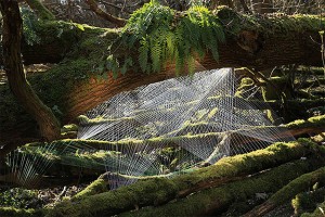 These beautiful, colorful linear installations aren't computer generated. Designer Sebastien Preschoux sets these up himself, outside in the natural world. He likes working in the forest, among the trees.