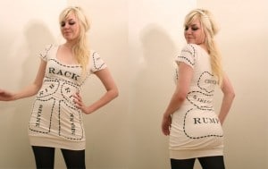 I am very much a woman and very much a meat eater, so I love the title of this article. Now you can sport your rack and your rump in this completely adorable meat dress, or anatomy lesson, however you want to look at it. This creative creation was designed by Kelly a.k.a. 'Your Present' on etsy.