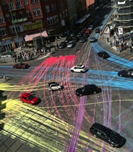 I bet you've never seen graffiti like this before. Two weeks ago a group of cyclists poured 13 gallons of bright beautiful paint on a street at an in ...