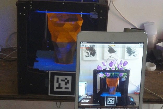 It basically takes your 3D designs and makes a real time virtual image of them that you can watch as it progressively becomes a real, touchable, physical object. It turns out, 3D printing and augmented reality are a great combination.