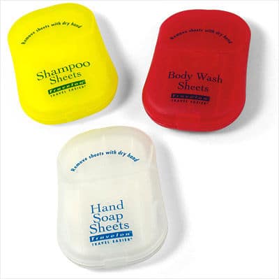 Dissolving Travel Toiletries – A little bit of water is all you need to turn these weird little sheets into Hand Soap, Body Wash, or Shampoo. Each packet contains 50 sheets and easily slips into your pocket or purse. ($4.99 to $12.99)