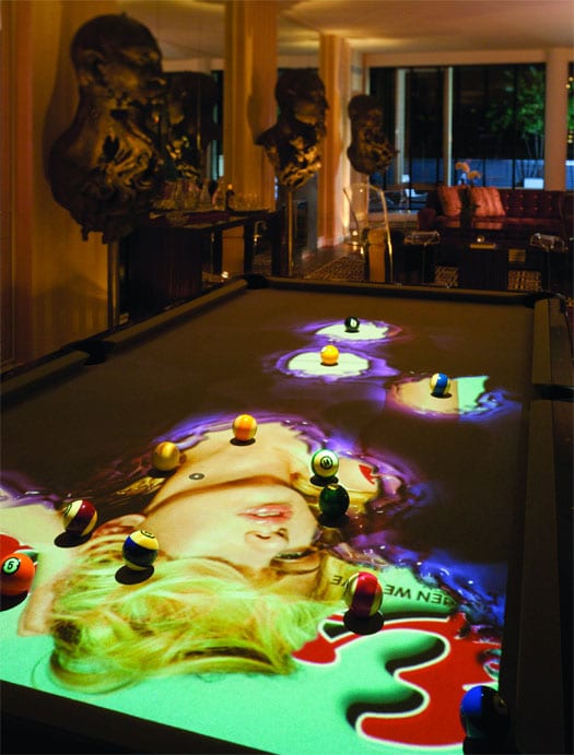 This is wild and crazy stuff. This Obscura Digital Cuelight Interactive Pool Table is featured at the Paradise Tower Penthouse, the Hard Rock Hotel and Casino in Las Vegas and the Esquire SoHo bachelor apartment.