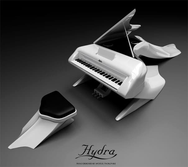 Recently a designer named Apostol Tnokovski visited one of her concerts where he found that everything about the show was in perfect harmony with her way of dressing up. Well, everything except that old, usual looking piano that accompanies her on stage. With a mind full of inspiration from her outstanding performance, he decided to go back home and see if he could do something about it. The “Hydra” was born.