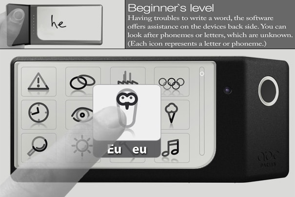 abcDARIAN is a concept project that is designed to make that happen. The device itself is super simple to use, and it will help everyone, young or old, to navigate through the texts they see before them. Not only does it help you spell and read, it also helps you pronounce the words in the pace you want it to. Simply drag the two sided transparent touch screen over any text, and it will read out loud to you through the headphones.