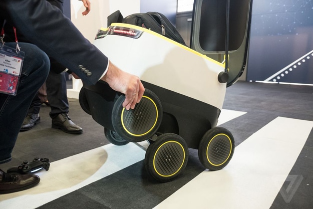 The first stage for these six-wheeled robots is a trial in Europe where humans will be controlling their every movement. Why not go autonomous instantly you ask? Well, these trials are not only for perfecting their ability to navigate but to see the customer reaction to the whole project. If successful, the autonomous robots will be let free and roam the streets with delicious pizzas in their cargos.
