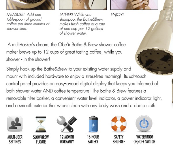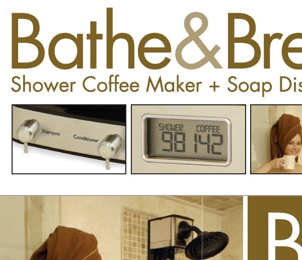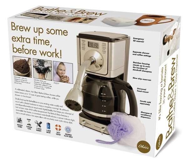 I found something that might make a lot of you really happy. It’s the Bathe & Brew coffe machine that will enable you to brew your coffee while you take a shower. It’s mobile too since the shower head is incorporated into the coffee machine itself. That should definitely save some time, and it would be great for camping. Just plug it in to whatever water and power supply you have available, and you’ll be all good to go.