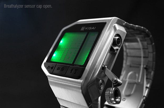 It’s called the Kisai Intoxicated LCD Watch, and it has a built-in breathalyzer test which is simple to use. You just open the sensor cap and press the alcohol button. After the sensor warms up, you blow for 5 seconds and then wait for the results to appear on the screen. The watch is programmed to display one of ten different alcohol levels, depending on how much you’ve had to drink. The LED light will also give you a quick color indicator. Green indicates sobriety, yellow indicates you’re buzzed and red means you’re definitely drunk.