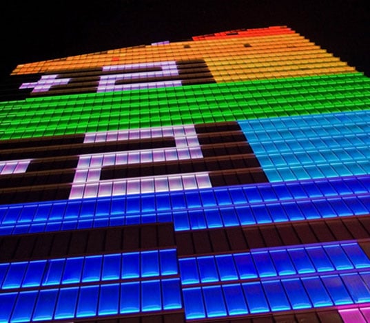 This nighttime light installation below, which is on the side of the Dexia Towers in Brussels, is the best one I’ve seen yet. 72,000 LEDs light up the 6,000 windows to show people what the weather will be the next day. Wow, suddenly checking the forecast on the Internet seems so boring!