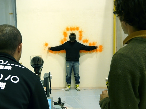 Benjamin Gaulon, the mastermind behind the project, has created this terminator precision master gadget and dubbed it “PrintBall“. This is a robot that shoots paintballs after a pattern carefully entered into a computer driven software. The precision is so exact that Benjamin even asked one of his buddies to stand in front of it so that the robot could fire those paint filled balls straight at him. Of course, he didn’t hit him or even nudge him. The precision is so exact that the paint almost didn’t touch his clothes, barely creating a humanoid pattern around him.