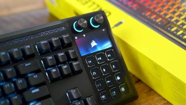 The Galleon 100SD is a flagship Corsair mechanical keyboard that integrates a 12-key LCD Stream Deck module, two programmable dials, and a five-inch LCD screen into a full-size keyboard chassis.