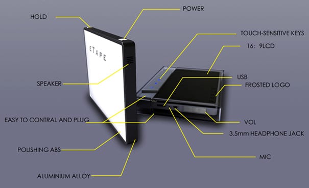 However, this new little gadget from designer Song Han Xin has surely taken the retro feel concept to a new and higher level. It has been dubbed the “eTape,” and it is an awesomely inspiring little touch screen cassette tape shaped media player that will make your iPod look stupid and old. Don’t we all want to be cool with our gadgets? Well, this one certainly will make you cool. No exceptions.