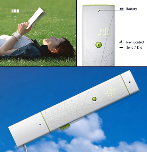 What: The Leaf is a wearable bracelet phone that incorporates solar cells on its front panel.