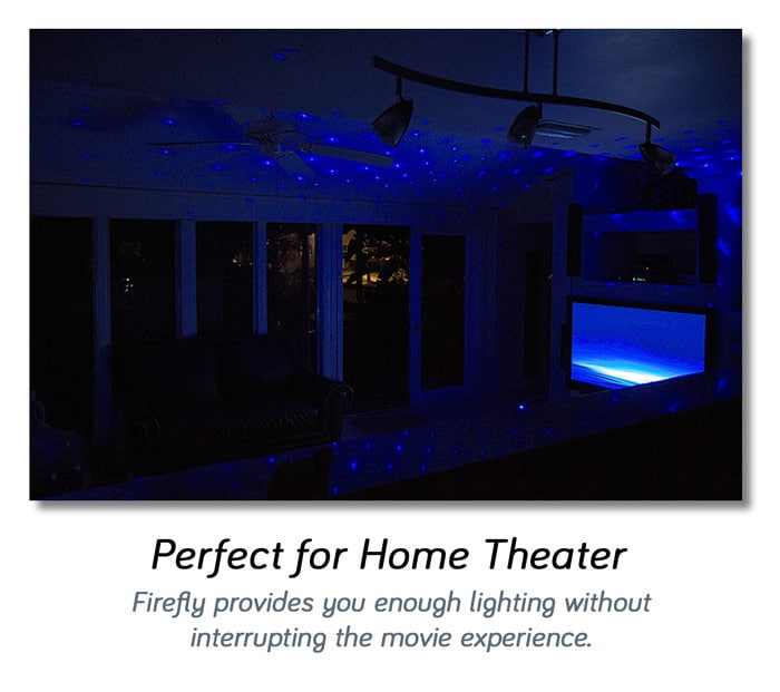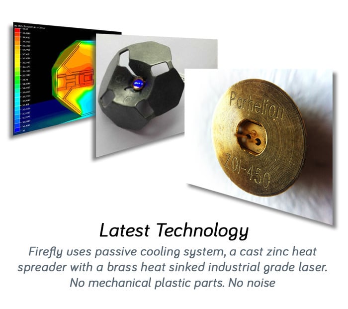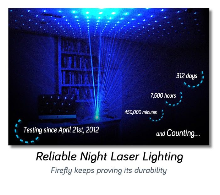 Firefly lights are basically blue laser lamps with passive cooling technology built into them. The safe, low power lasers are combined with sophisticated optics to provide you with a unique way to light up your world. Since the passive cooling technology eliminates moving parts, firefly lights are completely quiet.