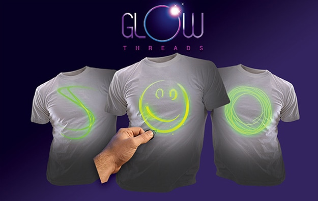Pretty neat, right? You can see it in action in the video below. Interactive t-shirts have come a long way in the past couple years, and this glow shirt is a testament to that. I look at some of the interactive fashions we wrote about a few years ago, and it makes me giggle that we thought that stuff was innovative back then. I guess at the time, it was. You can pick up one of these shirts (which comes with the laser) on Glow Threads for $25.