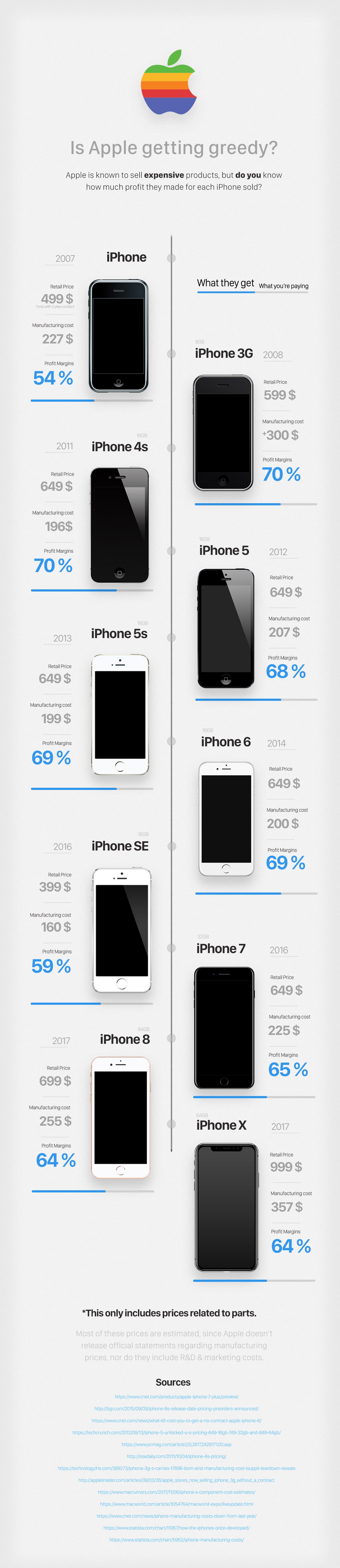 With the help of an infographic from the folks over at meilleur hebergement web, we are going to be going over just how much Apple makes off of each phone they sell. You may be shocked to learn that Apple doesn’t make as much of a markup on each device as you would expect, or the inverse.