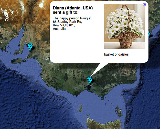 I did this today. I sent a basket of daisies to a person in Australia. When it gave me the address, there was a message that said, “This is the person you’ll make happy.” Oh my gosh, how cute is that? I’m now listed on the map on the website in Atlanta. You can see the people from all over the world who have sent their own RAOK. I just love this! You can check it out for yourself at Gift A Stranger.