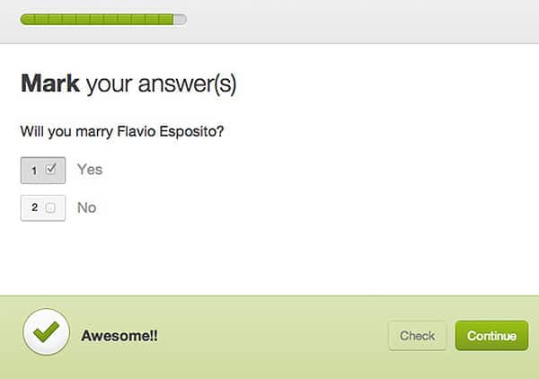 The customized “love lesson” the app walked Kate through seemed typical at first since it was a series of questions which she had to translate. They were all about love. Then the big question was thrown in there on the screen. The page that would appear after that was dependent on whether she said yes or no.