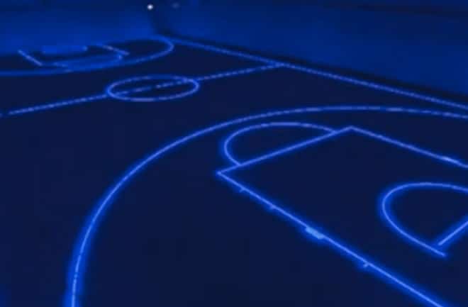 This futuristic-looking gymnasium floor isn’t a concept design or something to look forward to in the future, it’s already being used. This is definitely one of the coolest technologies I’ve seen all week. As I’m sure you know, on a traditional gymnasium floor, sometimes the lines can get confusing. There are so many lines on the court for different sports, and the players just get used to which lines are for which. I never thought about it before, but that is a bit old-fashioned.