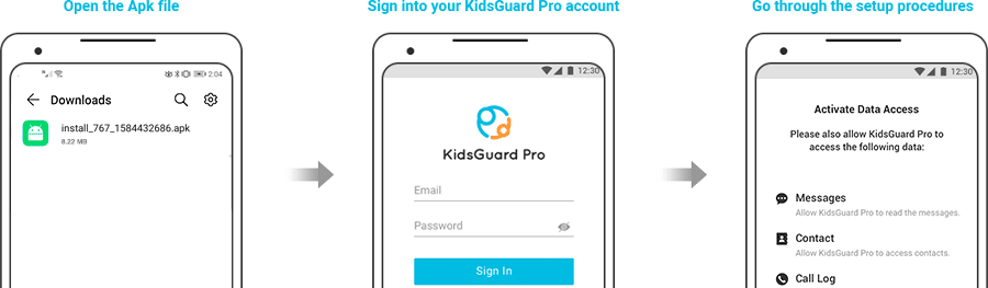 Once ready, you may need to get access to the target phone for 3-5 minutes to install the app, and it’s the only requirement for you to track the incognito history. You can simply visit the link below from any browser of the target phone and finish the app instructions accordingly. It’s rather easy to setup since you just have to click on some “Yes” buttons to enable the permissions for KidsGuard Pro on the target phone. Once finished, the app will disappear to run in the stealth mode and no one can ever find it.