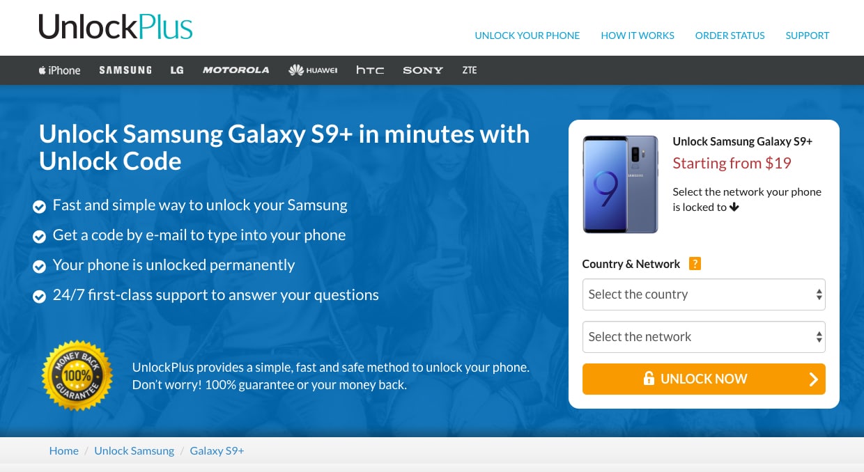 A lot of companies will sell you genuine unlock codes for your Samsung S9+ Plus but be aware not to get scammed. UnlockRadar.com and U