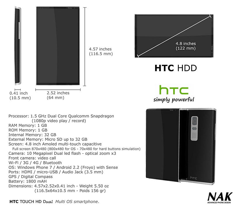 This new and awesome concept phone is called “HTC HDD” and has specs that you would just dream about when it comes to a cell phone. It’s truly a new step in cell phone development. I, for one, would very much like to see it become the next big thing. After all, Apple is already allowing you to run Windows on their Macs, so why not, right? So how about these features: