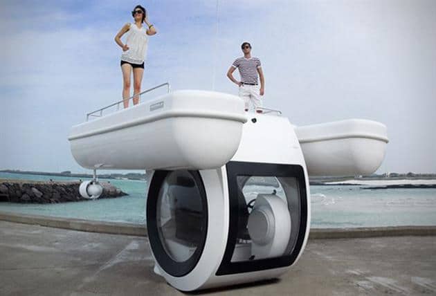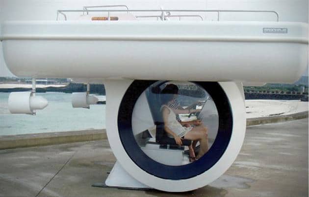 The personal submarine boat has a nifty little added pod underneath it that enables travelers to sit below the water and gaze upon the amazing wildlife that is swimming around underneath the surface on which you are traveling across. Look at it as a form of optimized traveling education. While you travel from A to B in this personal submarine boat, you will learn everything about the waters around you. That is definitely going to put a whole new perspective into your way of looking at the oceans, lakes and watery holes around where you live.