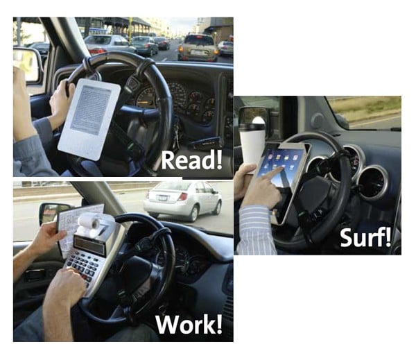 I think everyone knows by now that messing around with a mobile device while driving isn’t such a good idea. It’s lethal people, so don’t do it. The reason why it’s called “mobile” isn’t because you are supposed to use it when you are driving a vehicle. Seriously! Not only is it a huge hazard for yourself but also for all the other drivers on the road. Think about them, and what potential harm you put them through if something unexpected happens. There are way more time optimizations you could try instead of texting while driving, don’t you agree? However, if you feel that your texting or working while driving is more important than your own life (and the lives of others), there surely must be an accessory for that. We’ll just have to find it.