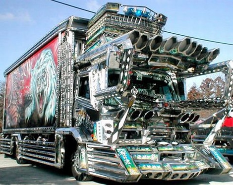 They are called Dekotora trucks, and they look totally badass. Think Optimus Prime + a Delivery Truck = Dekotora.