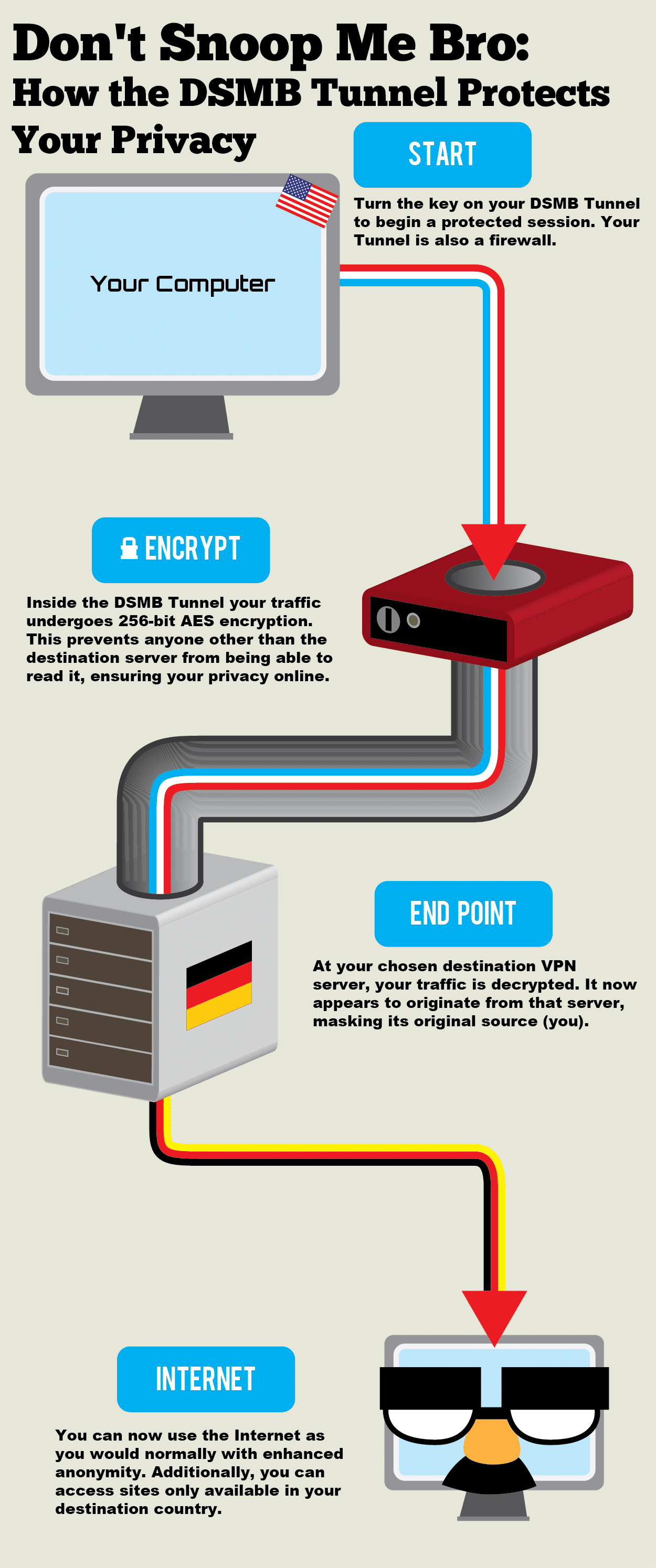 A new little gadget called “Don’t Snoop Me Bro Tunnel” (DSMB) promises complete online privacy with the switch of a key. It’s a really interesting little gadget that completely camouflages your online presence. We have all became aware of the intrusive actions that the American government (and I am sure others too) kept under wraps for so long. It brought one question into our minds, and that was, “How private is my presence online?”
