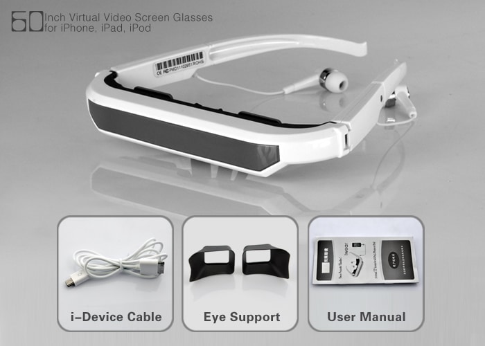 iPhone accessories, or rather, Apple accessories keep flooding the market, but in a good way. Some are purely for cosmetic purposes, while others have a more profound usefulness. The idea is of course that we should all be able to customize our smartphones however we want. The sad thing is that pretty much 75% of all the Apple 3rd party accessories are just cases. They are cases that have no other purpose than just a cosmetic customization and appeal, but there are accessories that have a useful aspect to them. One such example, and a quirky one to say the least, are these uber futuristic 60-inch virtual video screen iPhone glasses. You have to agree that they look pretty pimpin’ and could possibly make for a pretty awesome movie experience.