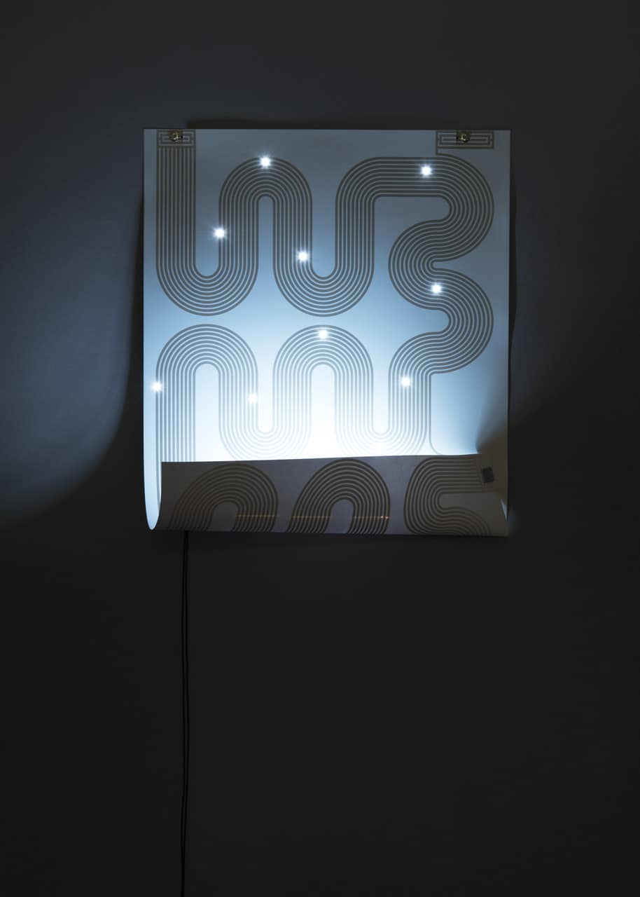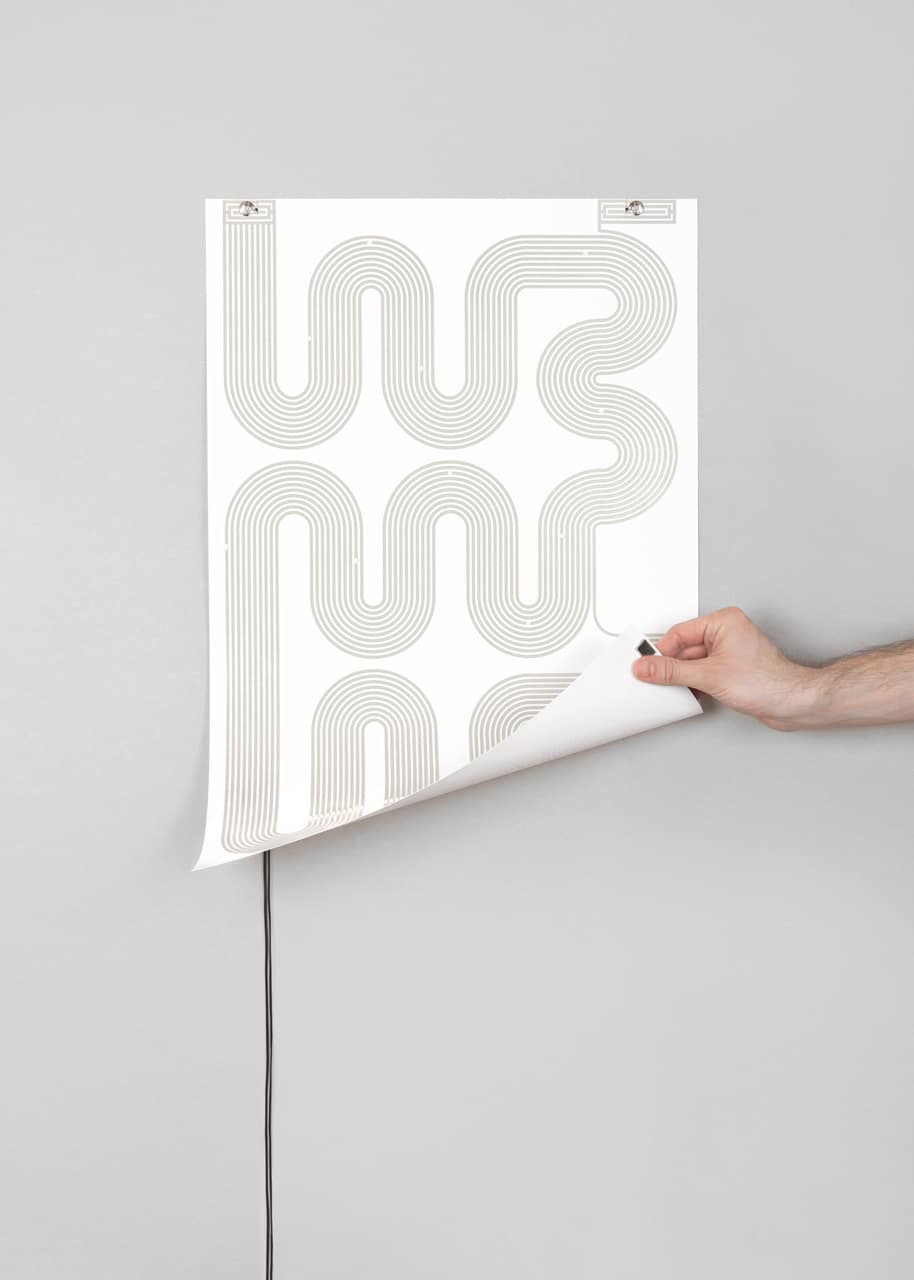 Like I said, the L-INK poster is not only a poster, but a also a lamp. The image in itself is made up of conductive ink that when connected to an energy source will turn on the lamp if the circuit is complete. It also has a magnet located at both locations to make sure the poster, when rolled up, stays that way and becomes a pretty neat light source. The L-INK is lit up by LEDs located near the bottom of the poster and will only light up when the conductive ink circuit is complete.