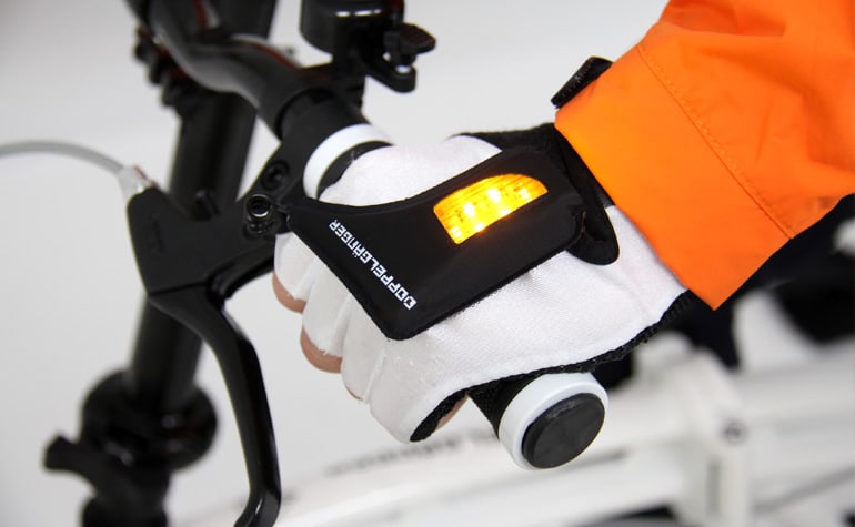 The turn signal is activated by a thumb button which makes the gloves quite unobtrusive and easy to use. Furthermore, the low energy LED lights make the battery last for ages! Or actually, the LED lights will blink for 120 hours, active state, which should allow you to take a whole lot of turns and let the traffic around you know where you are going. Being safe in traffic as a biker is something that we all have to get better at. These turn signal gloves can certainly help us do that. They were created and made available by Doppelgänger and can be acquired over at their website.