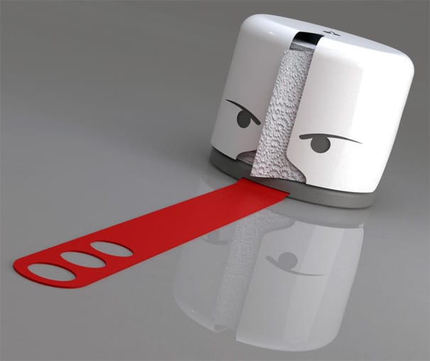 If a secure toilet paper holder can’t keep the paper put what and who can? Well, designer Mauricio Sanin Mazuera think he’s got the right idea and have designed one of the coolest toilet paper holders I have seen to date called the “Guardian“. The shielded holder resembles a robot with a red tongue. Yup, you read it right! The tongue is to be secured inside the water canister and the hooded paper holder cannot be taken or removed none the less share more paper than the person needs.