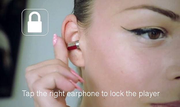 It’s controlled by your teeth. ‘Bite clicks’ change the song and volume.