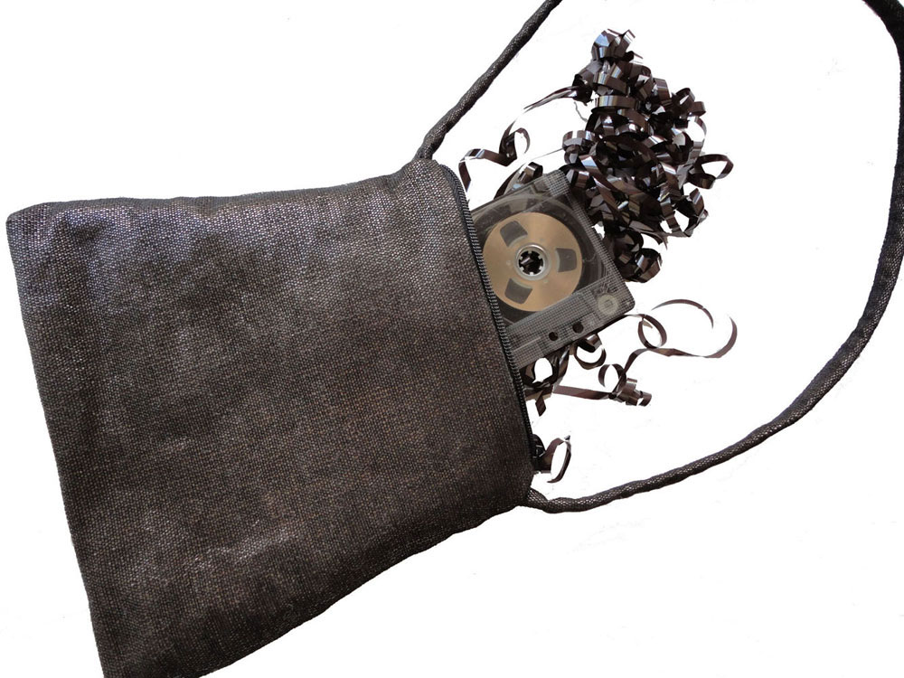 If you’ve got some old cassette tapes in your basement, and you want to take this project on, you might end up with the most creative necktie ever made. There is an example of a handbag made from this fabric below too. One thing is for sure; any creation using this technique would be one-of-a-kind!