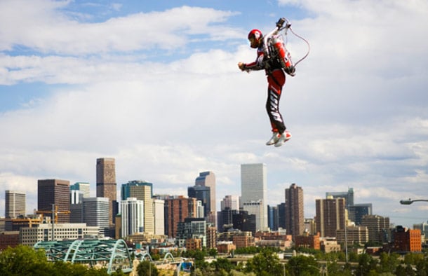 The cool thing is that the current model will keep you airborne for about 9 minutes. It’s a reasonable amount of time to get yourself to the corner store and back again. Just keep track of that time though since you wouldn’t want to find out mid-air that your pressure is out, and there is no pull in your pack. It wouldn’t be a very nice landing I reckon. Jet Pack International is already hard at work tinkering on their next model which is said to be priced at $200,000 when it’s available. I suppose in a couple of years, it will be equivalent to buying a sports car. Get ready for the revolution. Watch out, people in the sky!