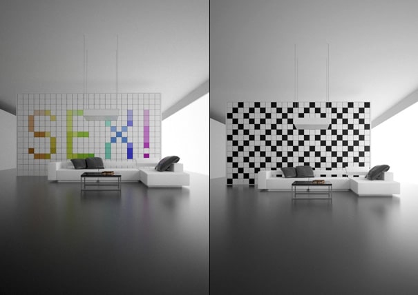 The “Change It!” wall designed by Amirko aka Amirkhan Abdurakhmanov is a wall of pure inspiration if you ask me. The possibilities are just endless and it’s entirely up to you what you want the motif to be for the occasion. How about a retro Space Invaders theme or why not a an inviting “Welcome” written in colorful pixels all over your wall. You are the designer so you choose.