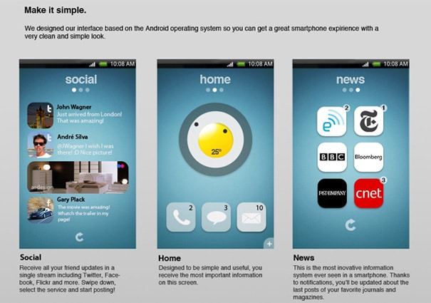 Oh, and the smartphone uses Android as a base, and according to André, it will also have its own app store. At closer look, it looks quite like the iPhone doesn’t it? Hmm… Still I’d like to mess with it to see what its potential is.