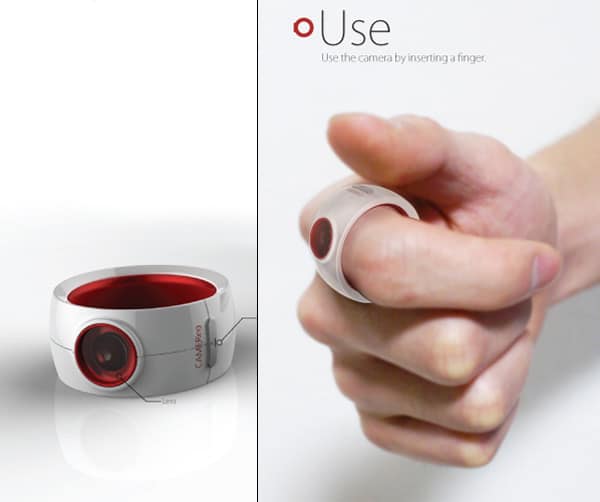 This ring camera, called the CAMER:ing, is conceptualized by Hyeonsik Studio and Jeon Yengwon, and it is a seriously geeky gadget. There are a few concepts out there that you can snap to your shirt, and they will automatically shoot pictures for you and upload them to your computer via WiFi or Bluetooth. This ring camera is similar to that, but it activates when you stick your finger through it.
