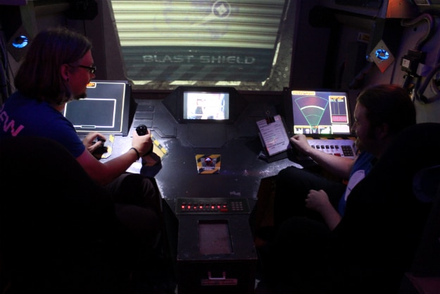 The cockpit can seat three people – one for the pilot, one for a tactical officer and one for an engineer. The teamwork has to be spot on in order to keep your spaceship safe from harm and to keep you alive, and that’s what makes this spaceship simulator so awesome.