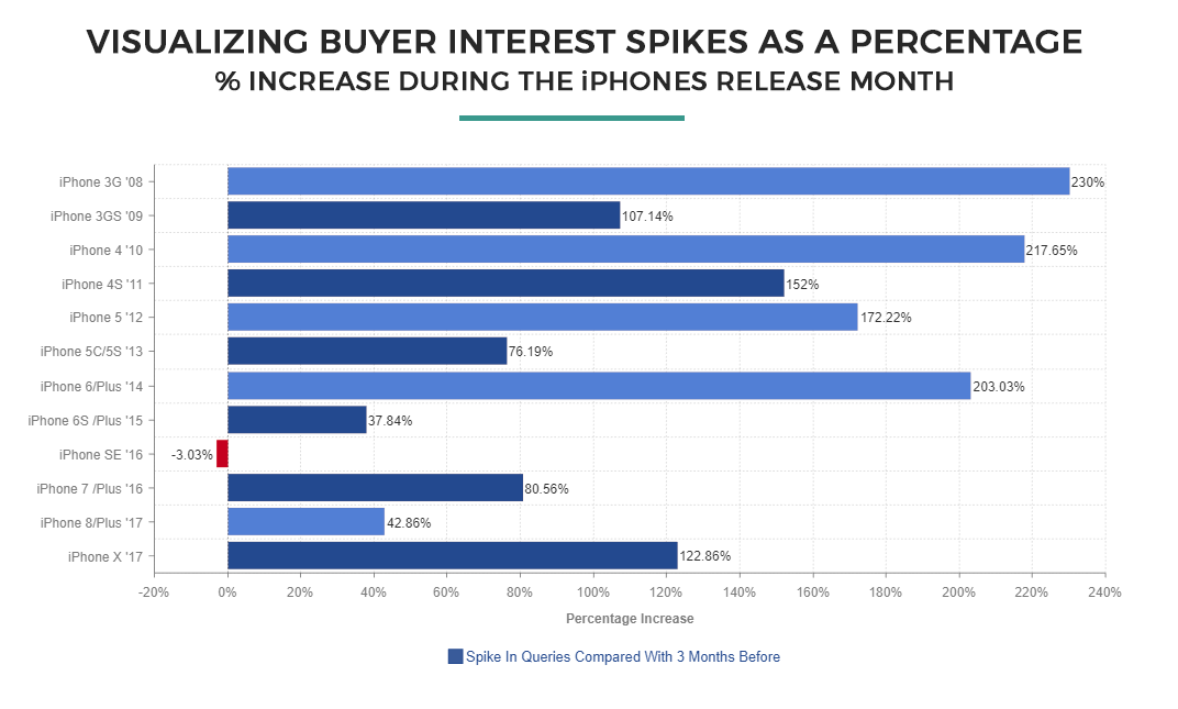 Percentage Increases In iPhone Buyer Intent 2007-2018