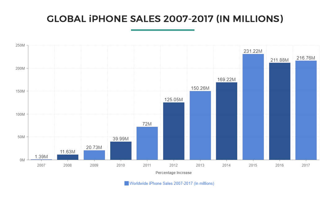 Percentage Increases In iPhone Trade-ins 2007-2018