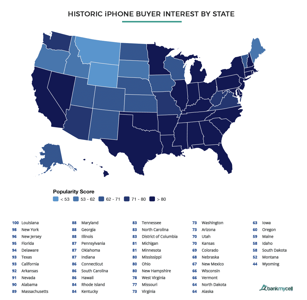 • The top five American states that want new iPhones over time are Louisiana, New York, New Jersey, Florida, and Delaware.