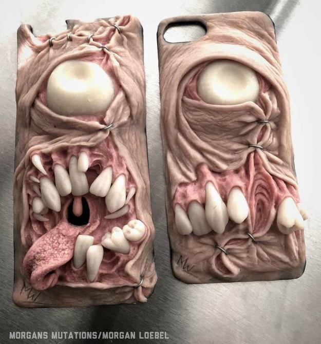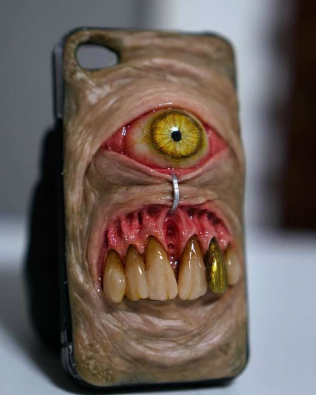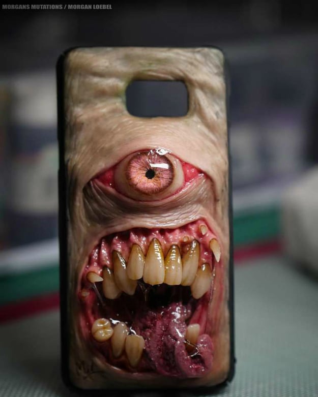 Morgan creates these custom smartphone cases and sells them on his Etsy shop. So far he has sold a whopping 361 of them (various creations also include necklaces and jewels). Keep in mind that they are all custom made and will freak out anyone who lays eyes on them (no pun intended).