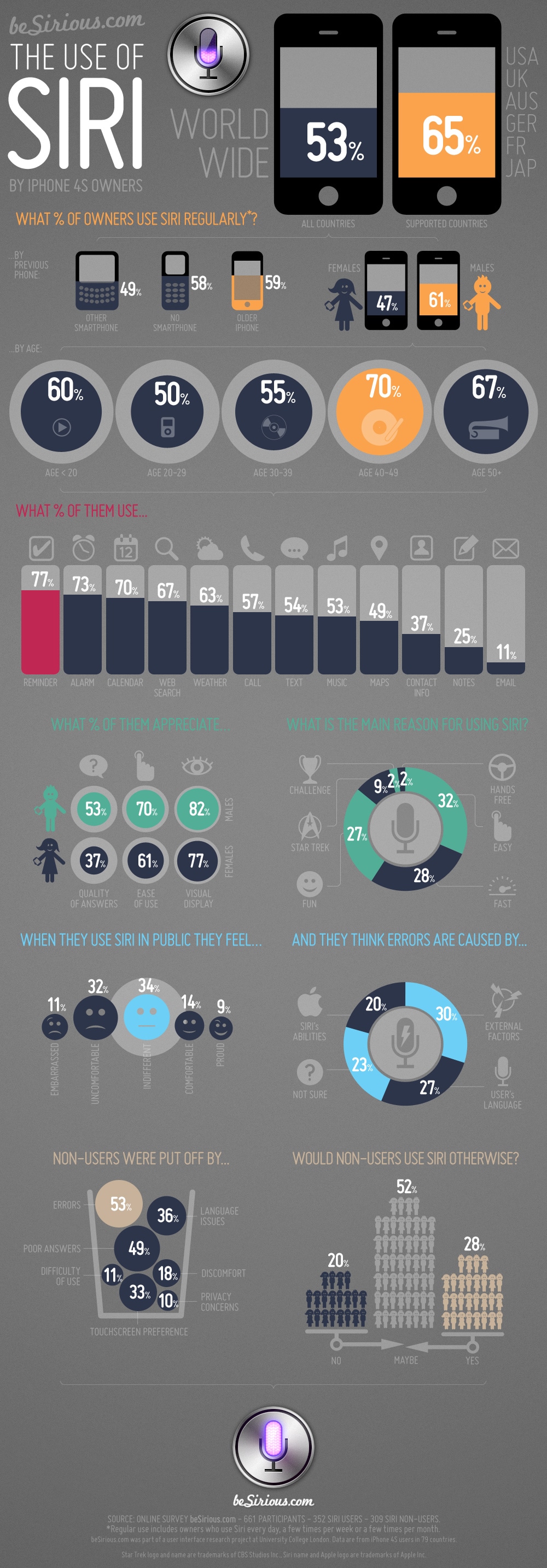 This information revolves around a poll that that the team beSerious conducted not too long ago, and it reveals the full truth. The team asked 661 users from 79 different countries about the Siri feature before they sat down and compiled the data they acquired. The result was a pretty interesting set of statistics that they further compiled into an infographic called The Use Of Siri.