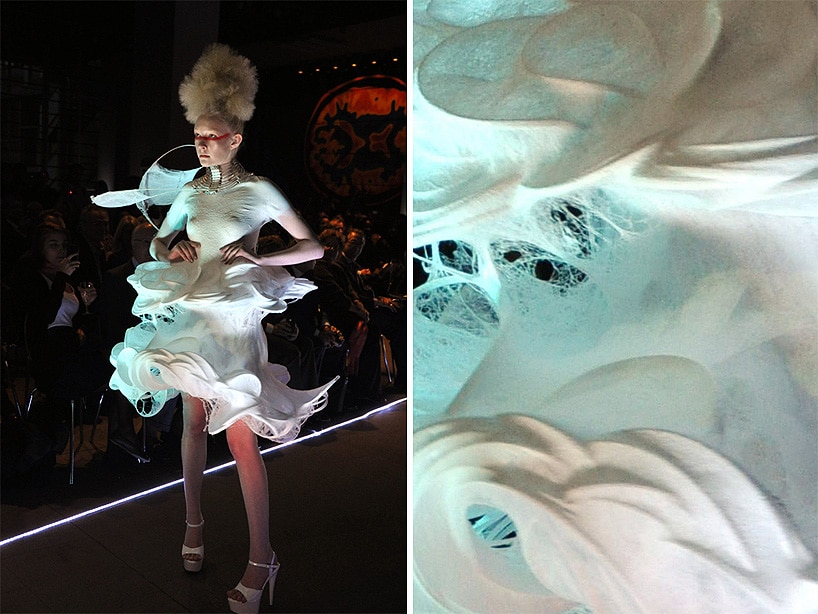 I wonder if in a few decades from now we’ll all either 3D print our clothes or make them in some other unusual way like this. Since over 40% of women already shop online for their clothes, it definitely makes the traditional shopping experience seem more and more dated.