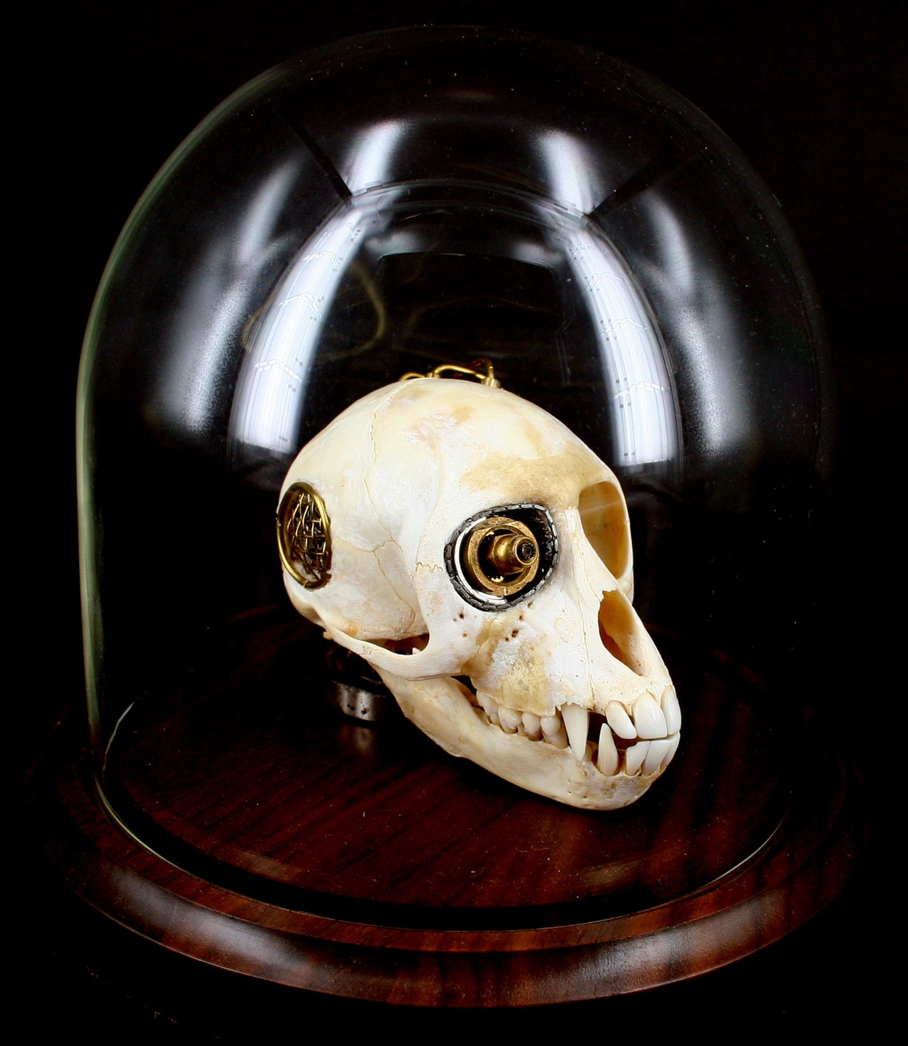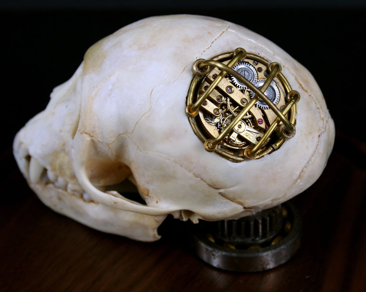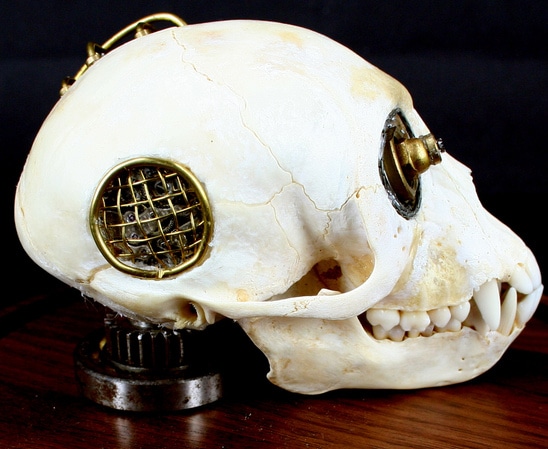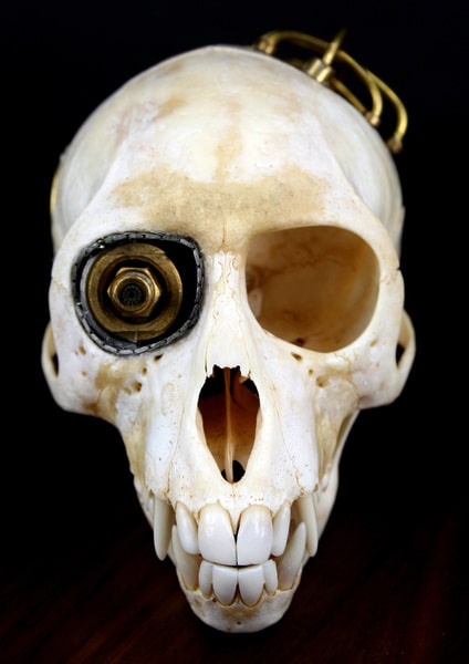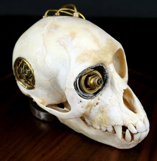 How far are we able to take steampunk before it gets all weird and on the edge of bizarre? The simple answer to that question seems to be: Never. Whatever your heart desires to steampunk and whatever your creativity is able to muster is probably where it all ends. However, since we are used to the fantastic ability for creativity to develop and evolve that edge will probably never be reached. Therefore, I give you a steampunked Vervet monkey skull.