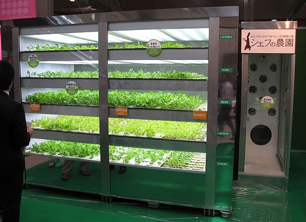 This vending machine looking contraption below is called a “Chef’s Farm.” Right now, it is designed to be used in restaurants that want sun-free vegetables (what restaurant would want that?). It can produce up to sixty heads of lettuce per day with 40 watt fluorescent lighting. That is 20,000 heads of lettuce per year. Right now, this machine costs about $90,000. According to all the reports I’ve read about it, “there is no word on the quality or nutritional value of the lettuce.” Hmm… that is kind of a big deal, isn’t it? Haha You can read all the geeky details about this machine here, but in a nutshell, it works like a great big tanning bed for vegetables. Hey, I wonder if this is how we will get a suntan someday when there is no sun too. I know, it’s really nothing to joke about.