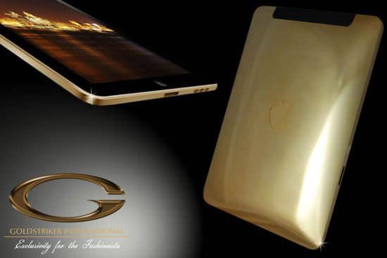 Introducing… the 24ct gold plated iPad. Designer Stuart Hughes from Goldstriker creates these little shiny and delicious iPads. He has three available: 24ct gold, 18ct rose gold and 20ct white gold.